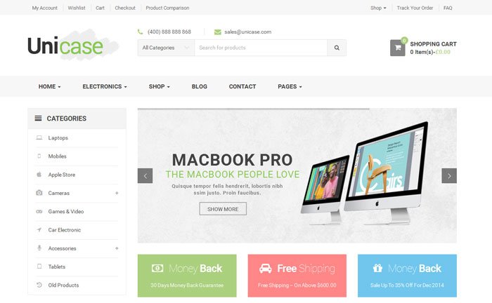 TEMA WORDPRESS PROFISSIONAL PARA LOJAS MULTIUSO – UNICASE